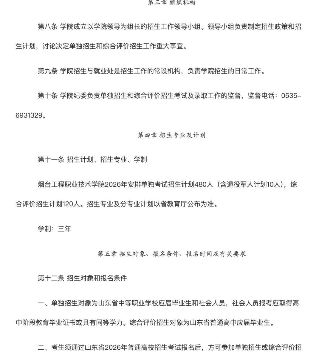 第三十条学院不委托任何机构和个人办理招生相关事宜。对以烟台工程职业技术学院名义进行非法招生宣传、培训等活动的机构和个人,学院保留依法追究其责任的权利。