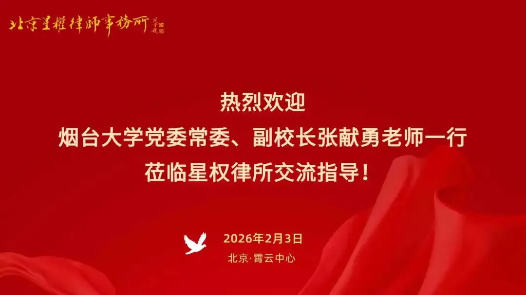2026年2月3日,烟台大学党委常委、副校长张献勇老师,烟台大学法学院院长宋振武老师、烟台大学法学院党委书记段志国老师一行莅临北京星权律师事务所参观、指导,并看望驻京烟大校友。烟台大学1992级校友董一鸣(烟台大学北京校友会常务副会长兼秘书长)、2001级校友毕小芳(抖音集团安全事务部高级总监)、2001级校友张国臣(知名作家、编剧、导演,笔名:张五毛)、2001级校友甄景善(北京星权律师事务所副主任)、2004级校友毕鹏飞(北京鼎世律师事务所合伙人)、2012级校友李泽坤(唯律科技创始人)、2014级校友李英华【北京星权(海口)律师事务所律师】、2015级校友翟瑞迪(北京迈伟律师事务所律师)、2017级校友杜秋雨(北京星权律师事务所律师)、2024级在读硕士研究生徐若彤(北京星权律师事务所实习生)作为驻京校友代表参与座谈。
