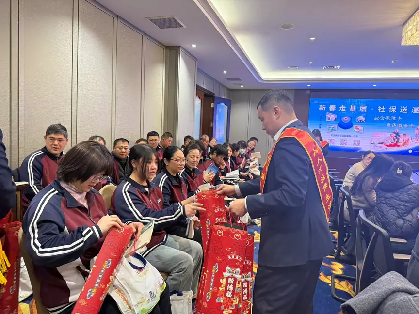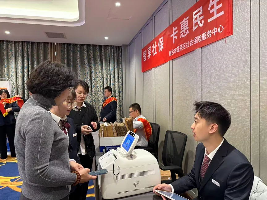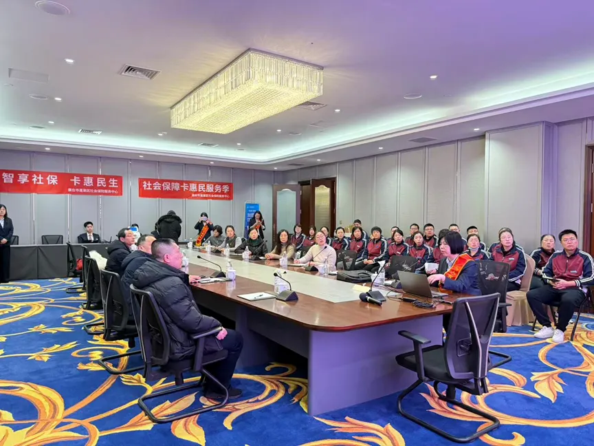为解决旅游企业员工社保办理难题,山东省烟台市蓬莱区社保中心走进蓬莱八仙过海旅游有限公司,开展“新春走基层,社保送温暖”活动,将社保服务融入新春元素,把社保关怀与新春祝福送到景区。