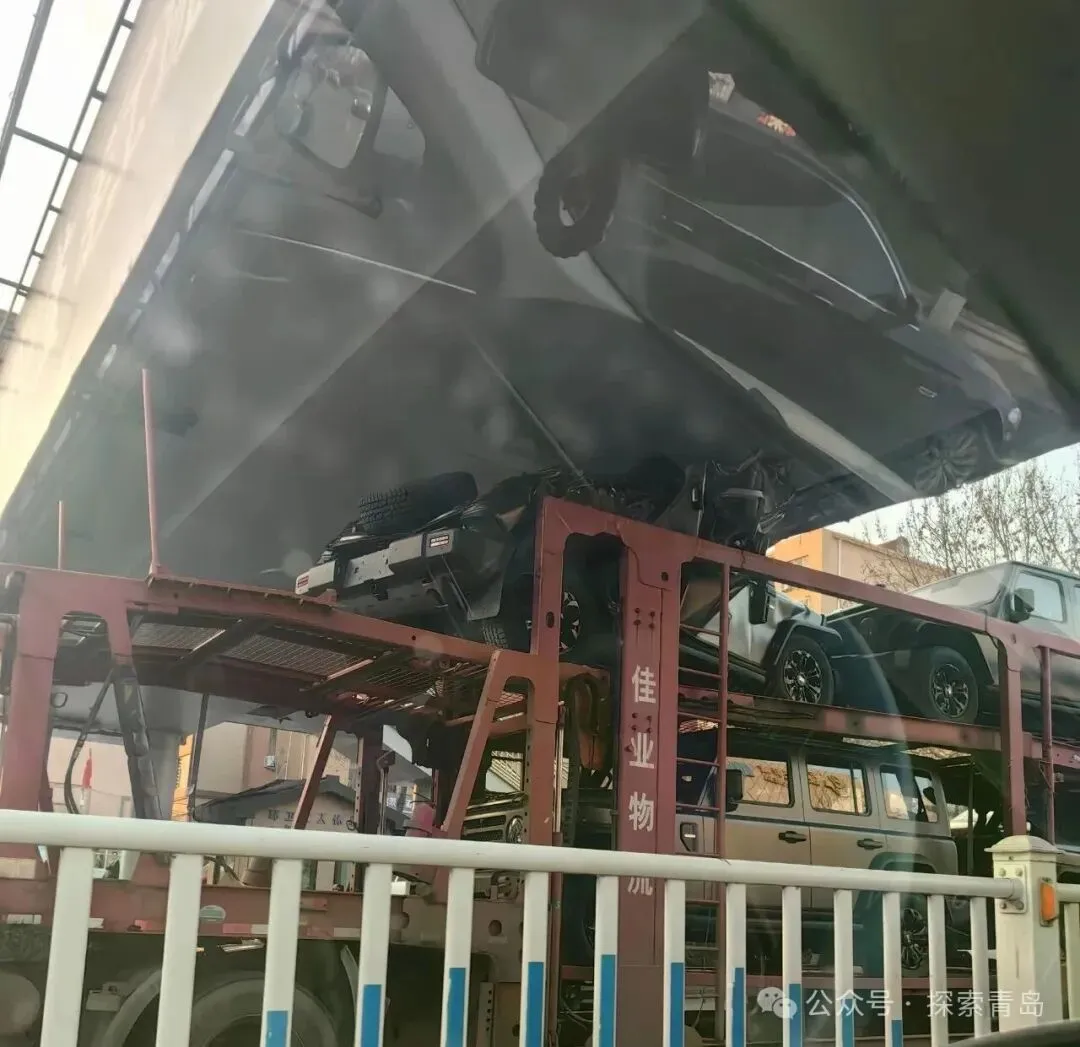 2026年2月2日下午,山东青岛黑龙江路主干道(万达广场附近天桥)上演了一场令人咋舌的“现实版卡丁车”事故——一辆满载崭新越野车的运输车,在行驶至某天桥时,因未注意到限高,运输车上面的汽车被挤压并掉下,场面触目惊心。
