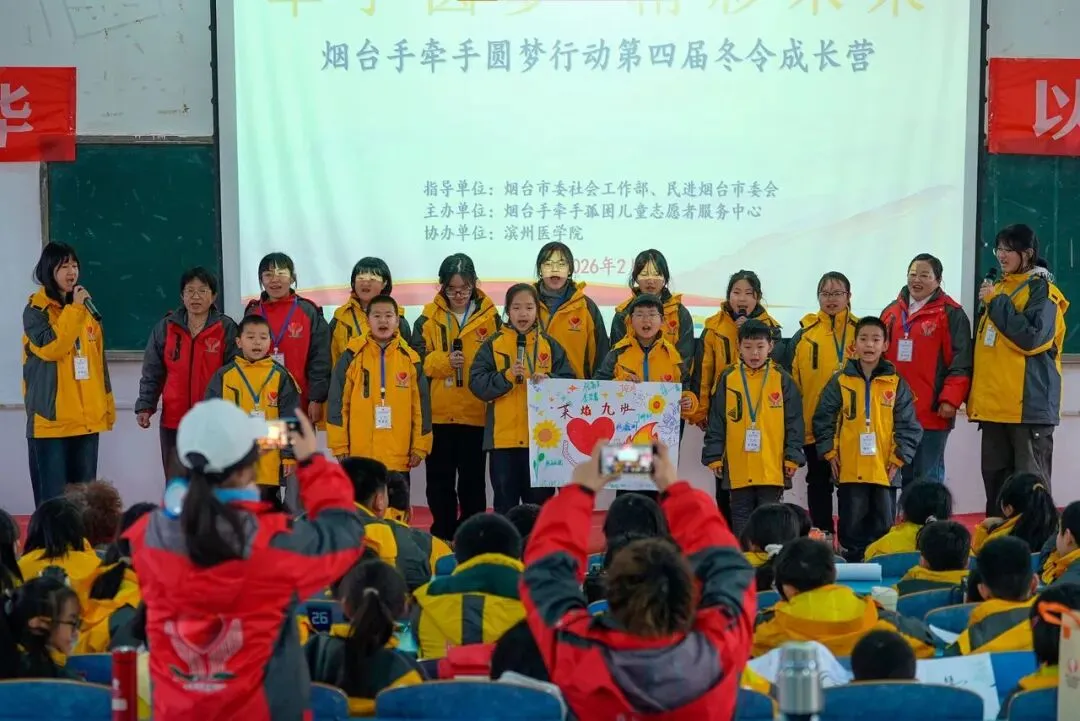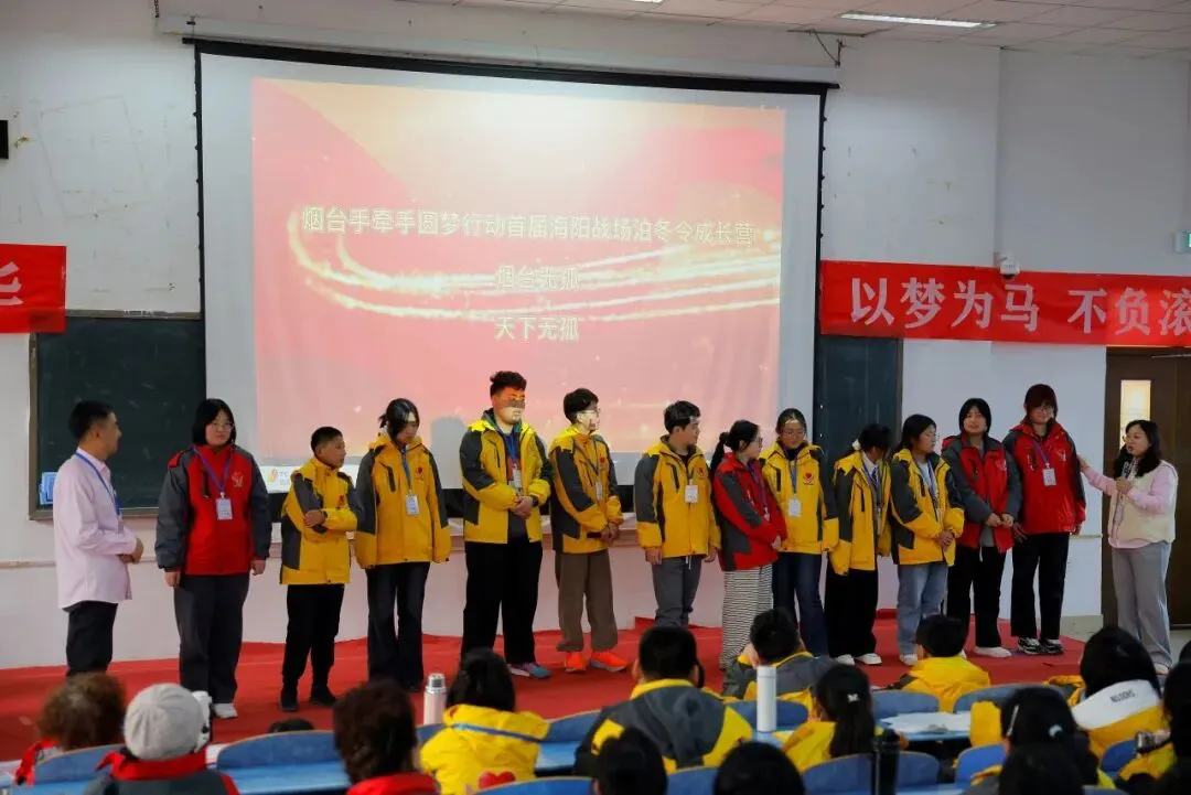在杜彦营长的带领下,孩子们细数着身边温暖点滴:老师悉心照料肠胃不适的小伙伴;摄影老师扛着沉重设备,为大家定格每一个美好瞬间;烟台手牵手宋华西理事长、杜彦营长搭建冬令营这一平台,为孩子们注入前行的动力;以及志愿者们的暖心付出,得知孩子缺被褥,便主动让出自己唯一的被褥。哪怕只是为孩子们轻轻掀门帘这样的小小举动,也温暖了孩子们的心房,照亮了他们的眼眸。