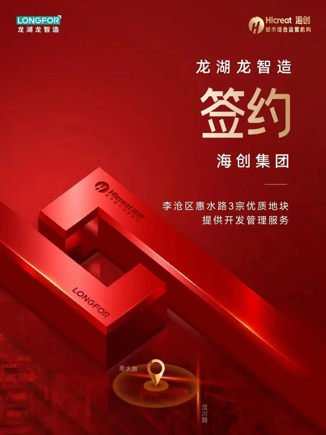 近日,龙湖龙智造官宣与青岛海创置业正式签约,为李沧区惠水路3宗优质地块提供项目开发管理服务。