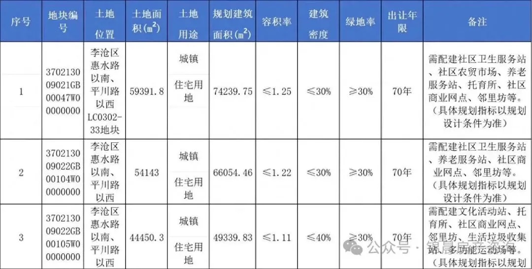3宗地块容积率最低仅1.11,最高1.25,总占地面积约157985.1㎡,总建面约18.96万㎡,从规划指标来看,未来有望打造为高端别墅、洋房社区,为区域改善市场再添新供给。3宗地块整体供应,凭借高总价成为2025年青岛土地市场的“总价地王”。