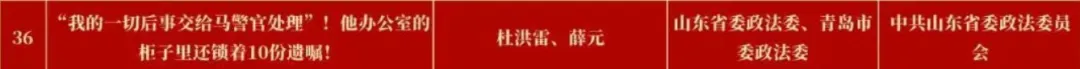 2月3日,由省委网信办主办的2025山东“双百”正能量网络精品名单揭晓,活动经过评委线上打分和线下评审以及结果公示,200件网络精品脱颖而出。其中,由省委政法委推荐,省委政法委、市委政法委联合创作的作品《“我的一切后事交给马警官处理”!他办公室的柜子里还锁着10份遗嘱!》获评2025山东“双百”正能量网络精品“网络正能量文字”奖项。