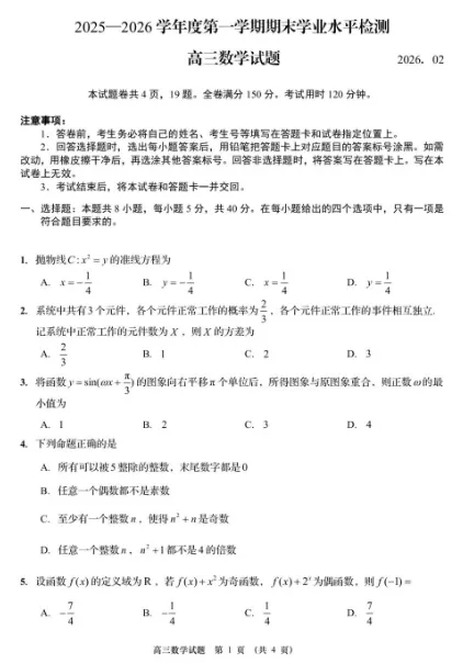2025-2026学年度山东省青岛市第一学期期末考试高三数学试题