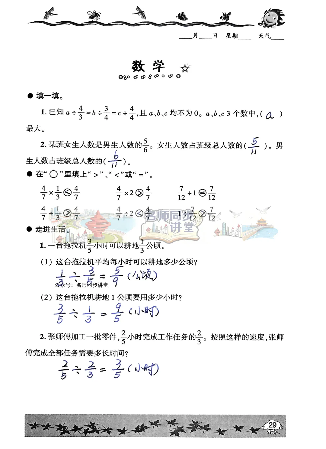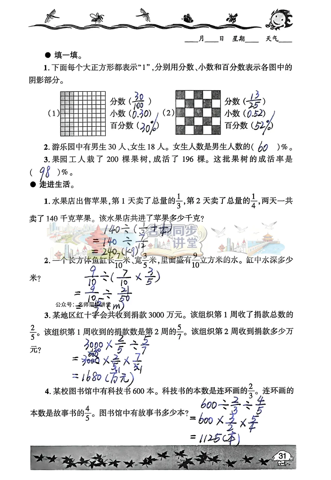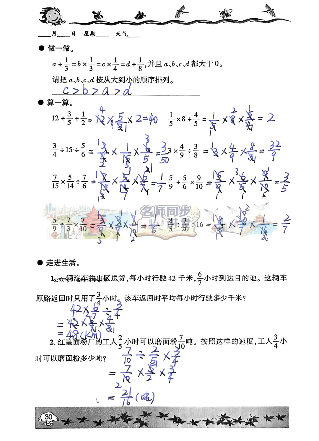 同学们一定要独立完成,千万不要直接抄答案哟