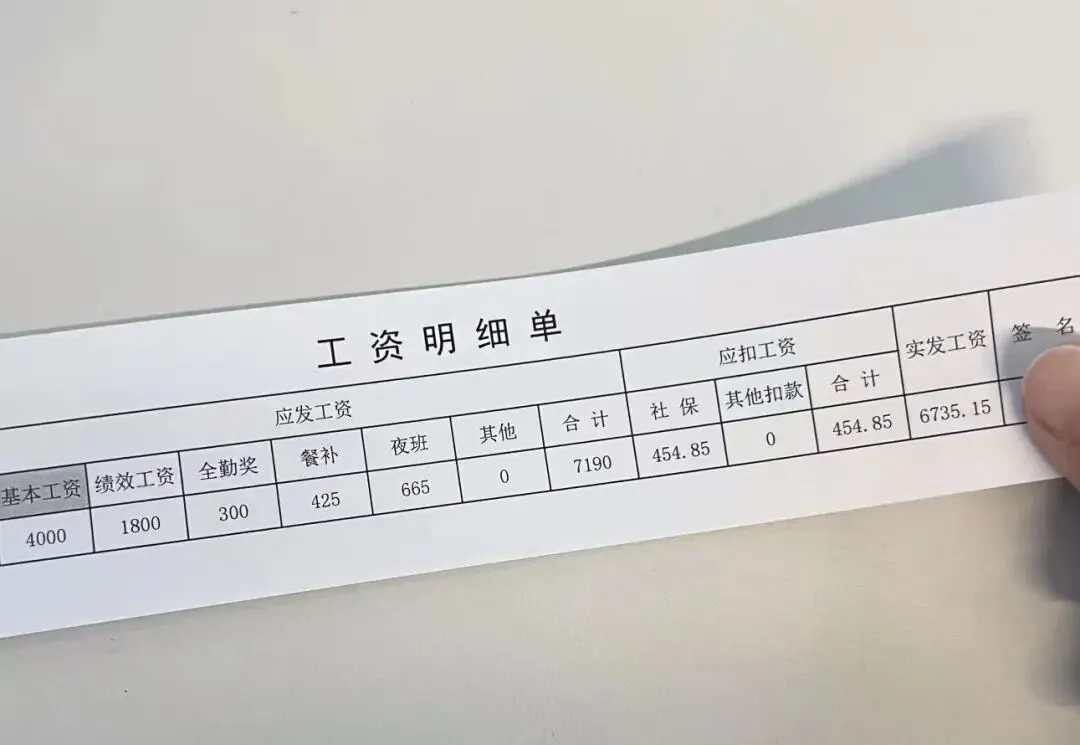 构成:基本工资 4000 + 绩效 1800 + 全勤 300 + 餐补 425 + 夜班补贴(晚自习)665
