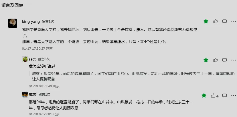 三周前,在谈及当年的青岛大学时,有热心网友留言,提到康有为墓、提到1994年“花儿一样的年龄”。