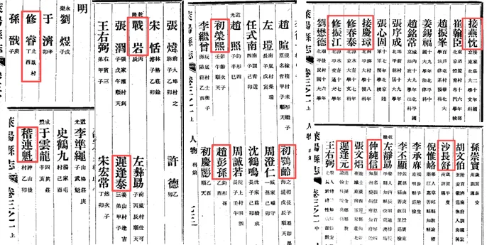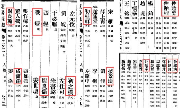 图2 莱阳进士及举人中接、初、尉、咸、仲、战等姓氏记录