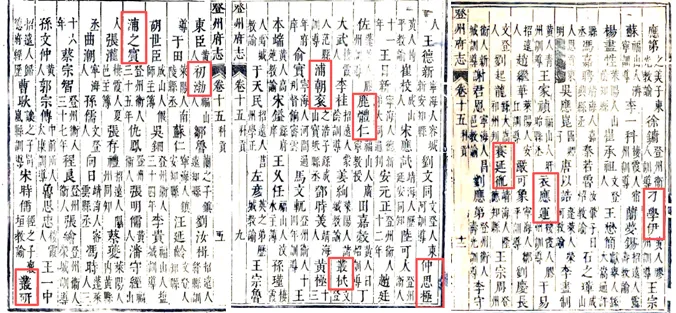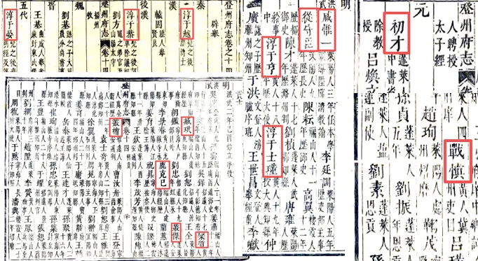 图4 登州府志中进士及举人中浦、丛、鹿、衣、赛、初等姓氏记录