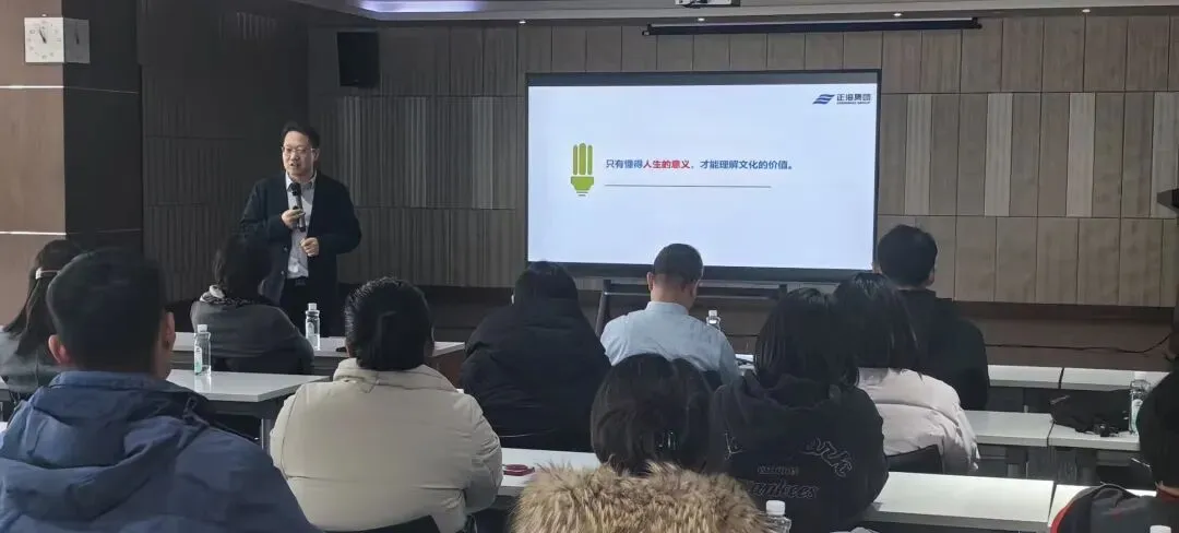 全杰书记为大家带来了《如何用好正海的思想武器》专题讲座。全书记从“什么是文化”“为什么需要文化”“正海文化体系”等维度展开,结合冰山模型、干部段位理论等生动案例,深入解析了企业文化凝聚人心、赋能发展的核心逻辑。讲座中,“只有懂得人生的意义,才能理解文化的价值”“核心价值观是一伙人做事的原则和准则”等观点引发了学员们的深刻共鸣。