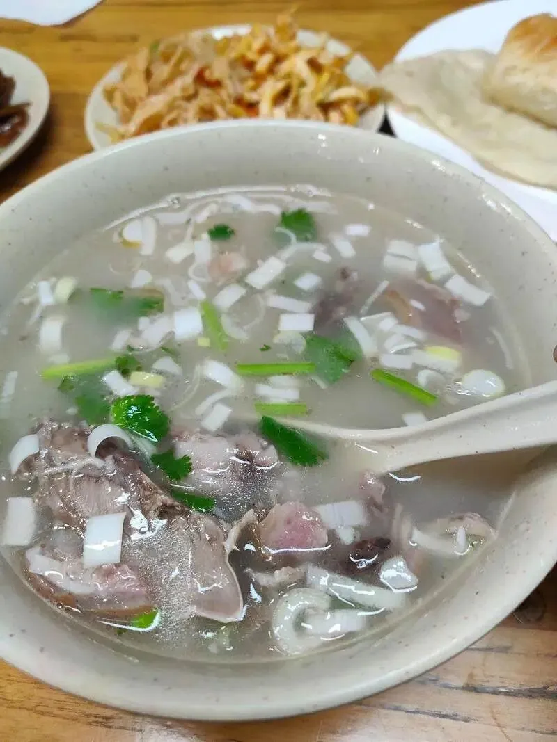 03 碳水王国里的味觉狂欢到了平度,减肥的事儿先放放。早起别睡懒觉,去街边找家羊汤馆。不是那种漂着红油的,而是熬得奶白的汤,羊肉切得薄,葱花一撒,胡椒粉一抖,一口下去,胃里暖烘烘的,人就醒了。