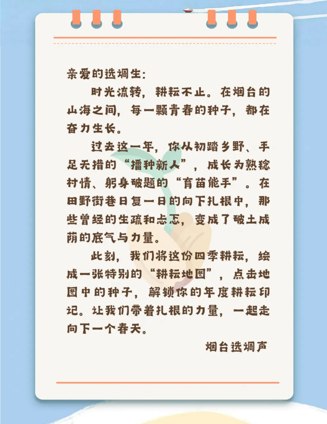 >步履耕春,山海为章:解锁烟台选调生的年度耕耘地图