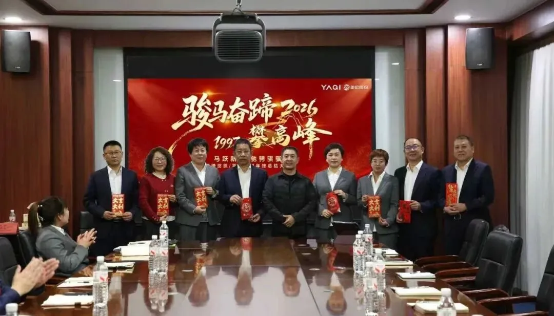 2月3日,烟台亚琦纺织有限公司召开公司高管年终工作汇报会,全面总结2025年工作成效,系统部署2026年发展任务。公司全体高管参加会议。 会上,亚琦业务、技术、QC、电脑机、生产,英伦业务、技术、电脑机、生产等部门负责人依次登台,作工作汇报。会议现场组织2025年度各部门工作成效考核打分,发放2025年纱线销售比对赌金,订立2026年对赌协定。
