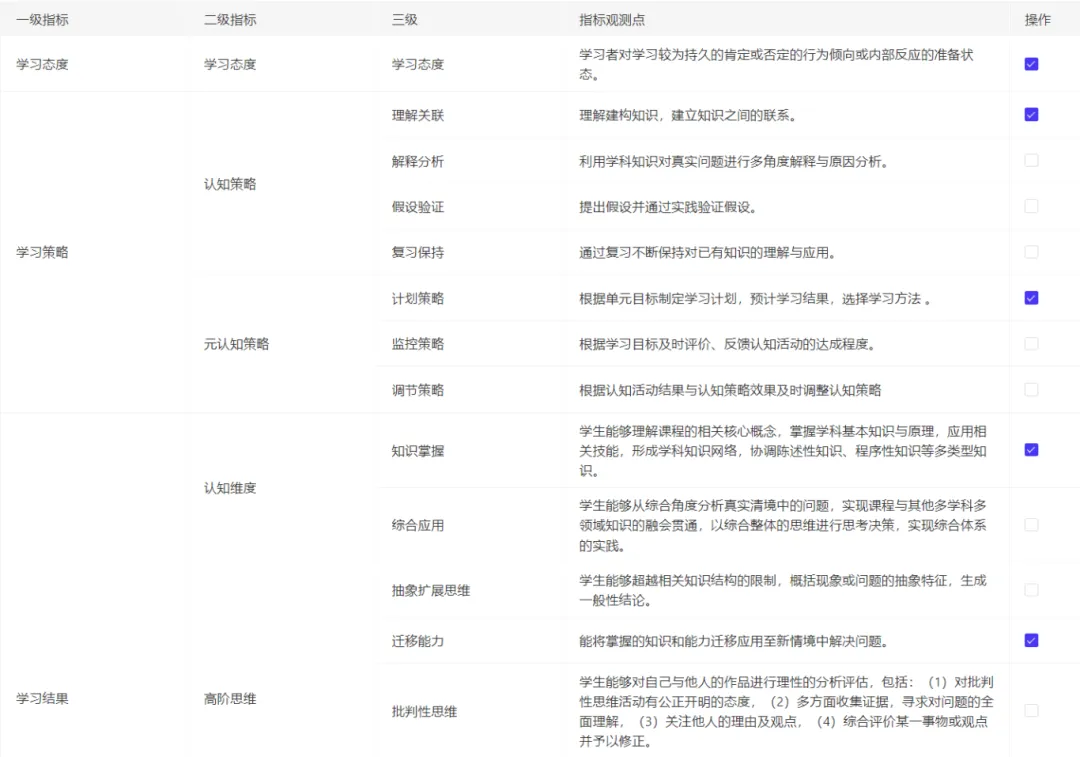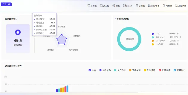 AI助力学情分析,明确课程培养能力点,运用多元化的评估体系,以确保学生在整个学习过程中都能得到及时的反馈,全面评价学生的学习成果。同时通过AI进行答题分析能够提升学生的学习效率和效果,量化评估学生的学习成效和掌握程度,为教学调整和个人学习改进提供具体数据支持。