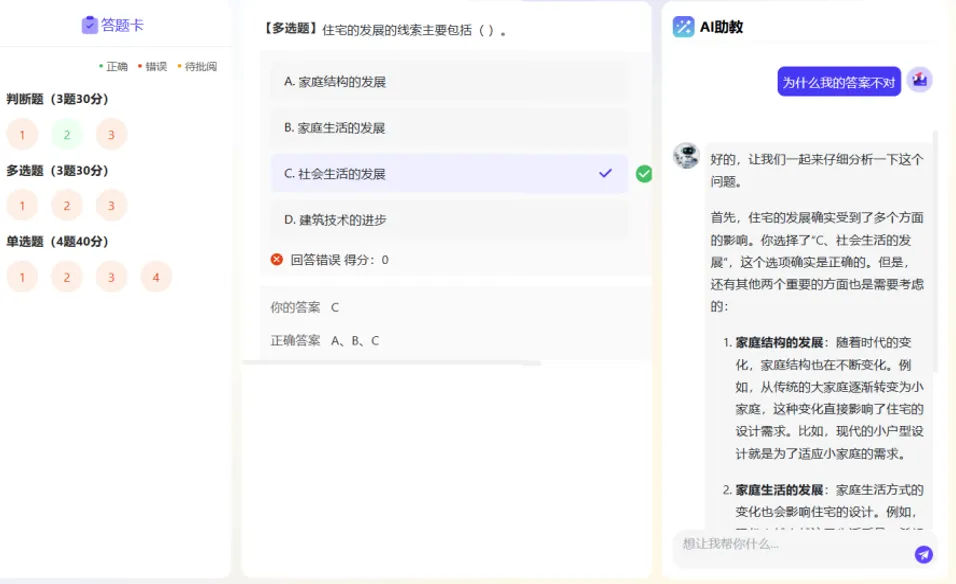 • AI可以紧扣课程内容,进行引导式答疑,并提供参考来源,定位知识点。