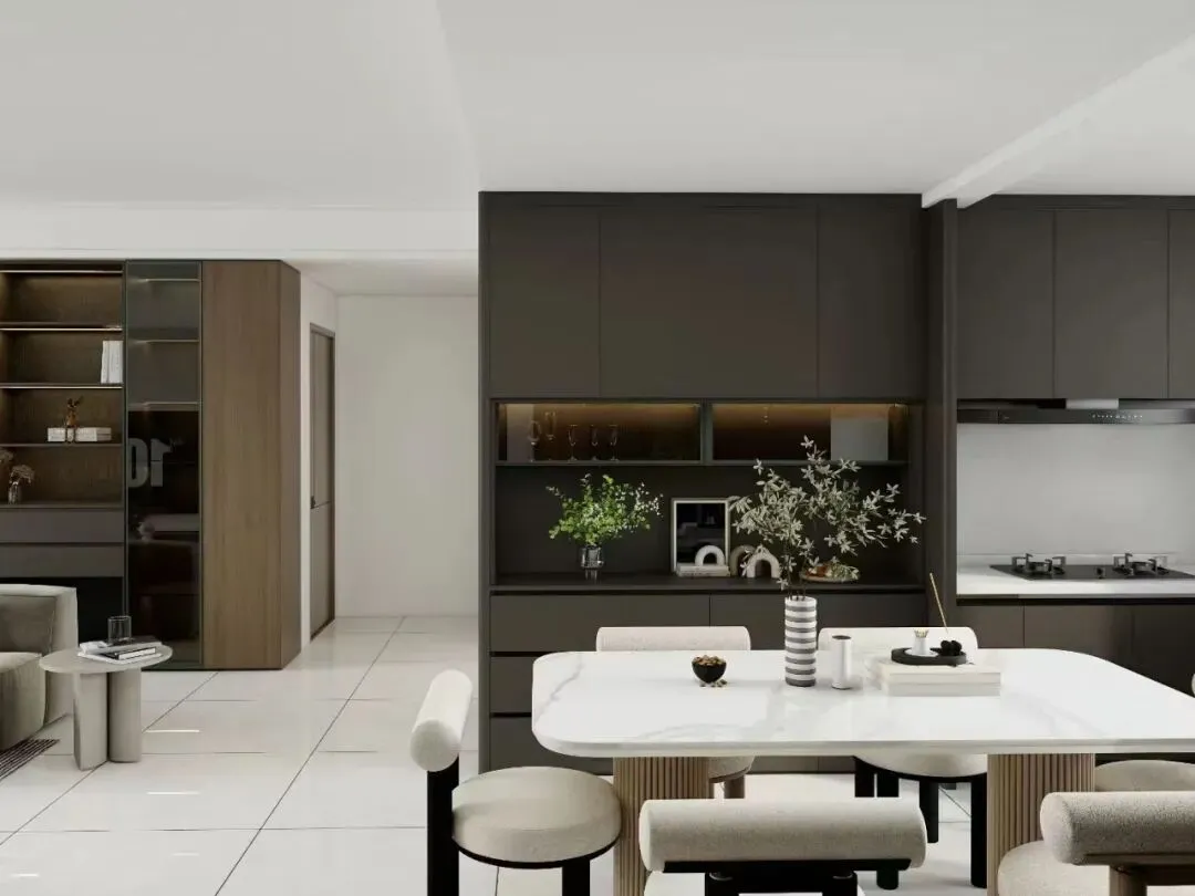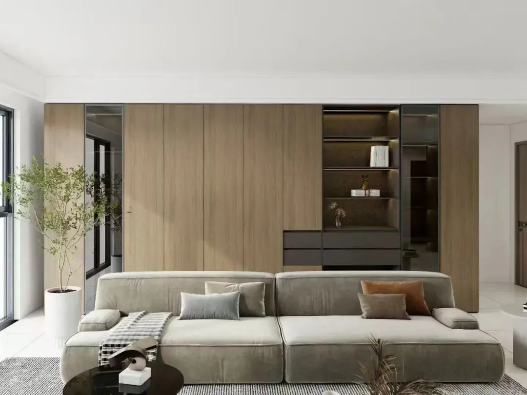 覆盖全屋整装定制:衣柜、橱柜、书柜、榻榻米、护墙板、背景墙、门窗套等,实现家居空间的高度统一与和谐。