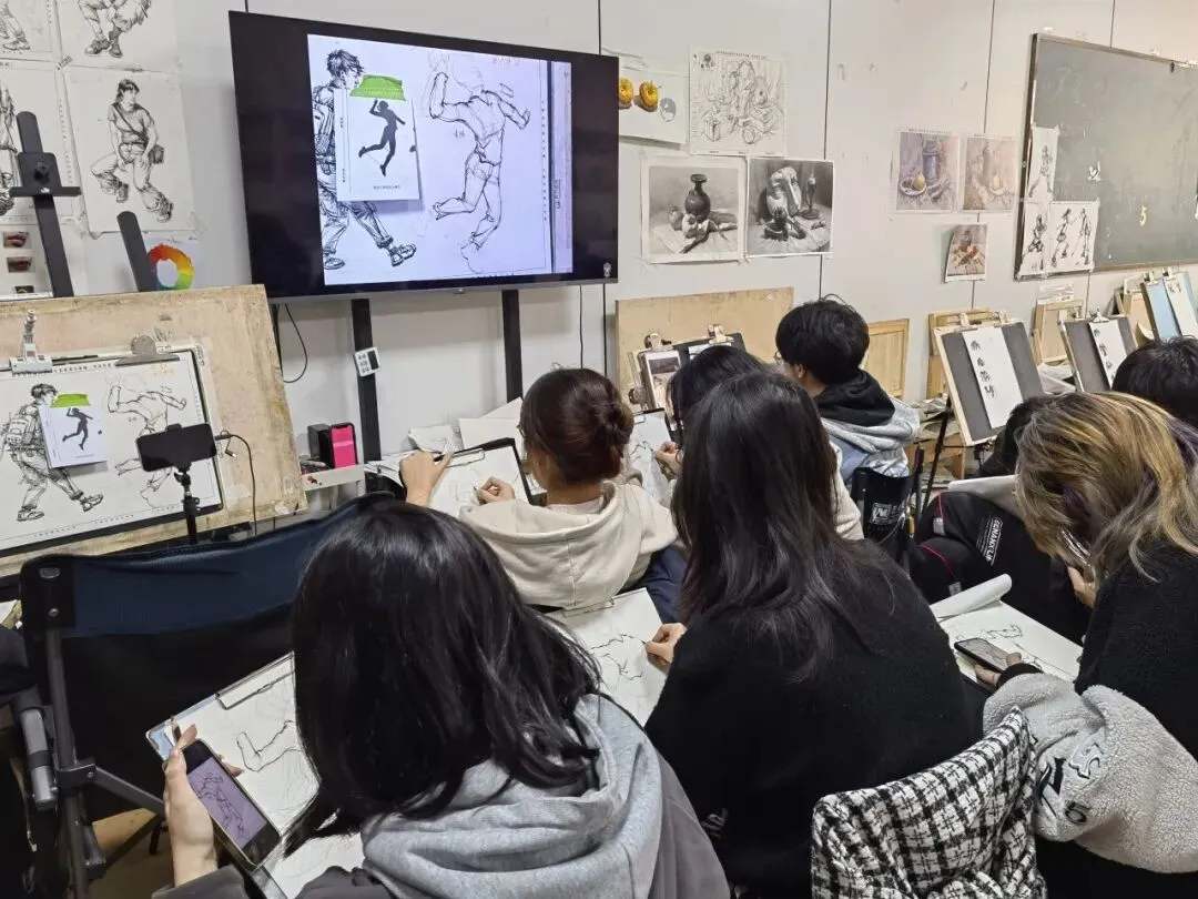 2.主教老师现场示范绘画步骤,从起形到上色全程可视化,学员可近距离观察技巧细节;