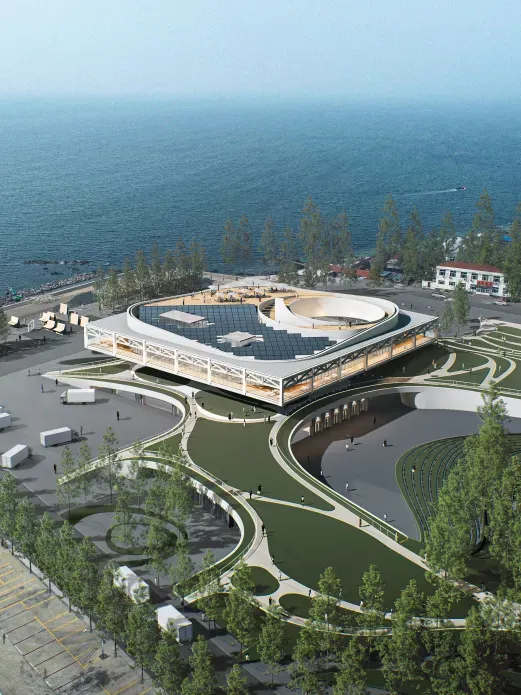衔接海水浴场与海岛游览动线,是游客必经之地,通过“码头 + 休闲”的逻辑,打造网红打卡地标。