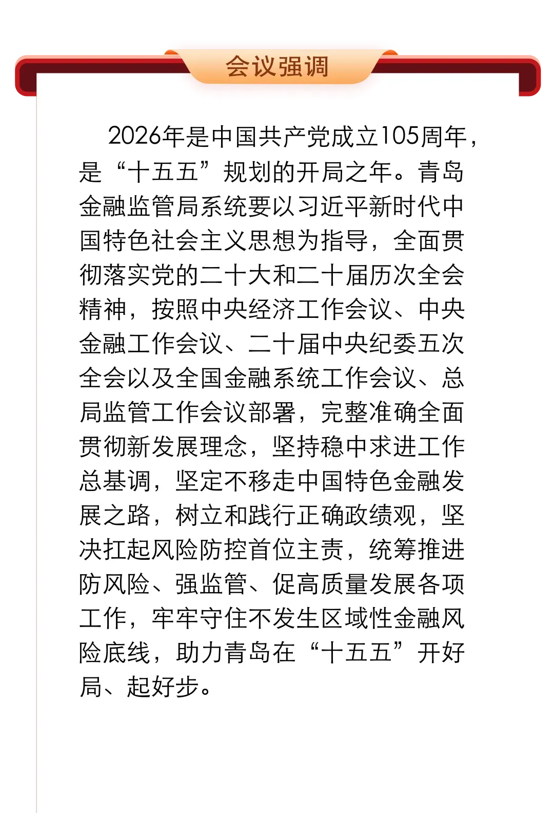 >一图读懂 | 国家金融监督管理总局青岛监管局 2026年监管工作会议