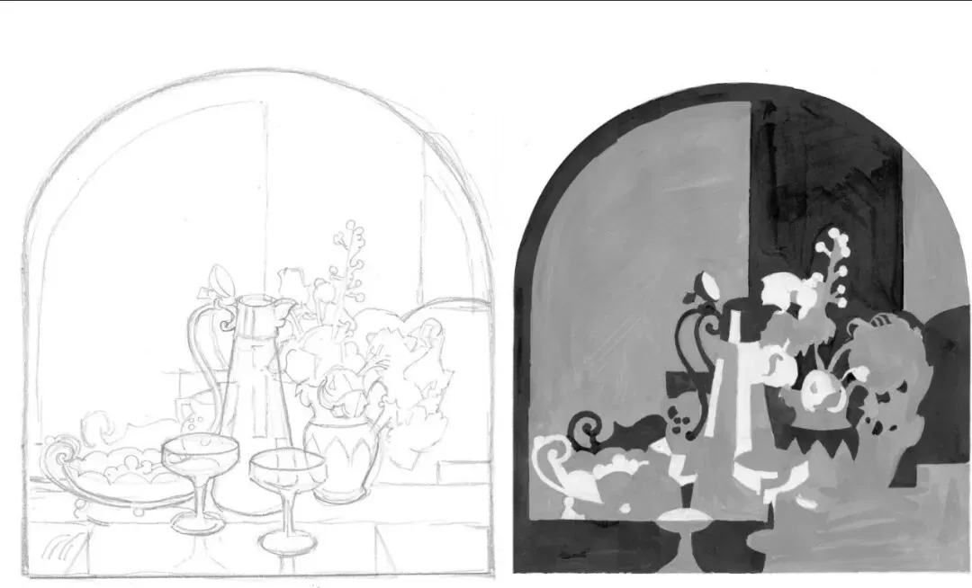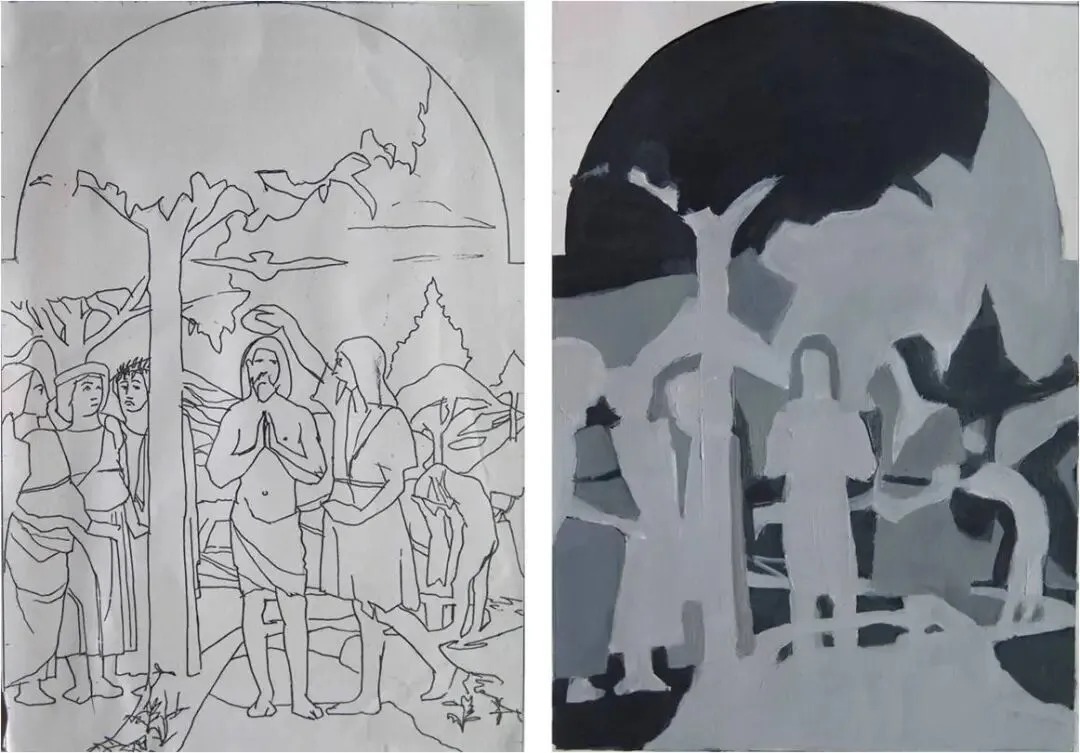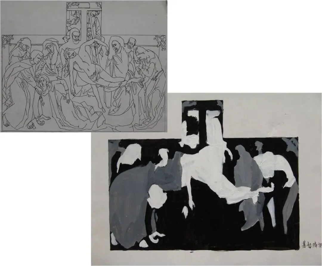 核心议题: 图形研究是绘画基础转入创作的中间环节。也是构图学习的具体内容。画面图形研究设置了一系列课题。通过课题作业,逐步建立“形状”的意识,建立起“构建、编排、组织、变换图形”,以及注重图形之间关系的意识。引导学生从写实的空间结构造型转向画面图形结构的研习,并与创作构图接轨的过渡性“语法课程”。它既是造型基础的高端课程,也是构图研究的基础课程。