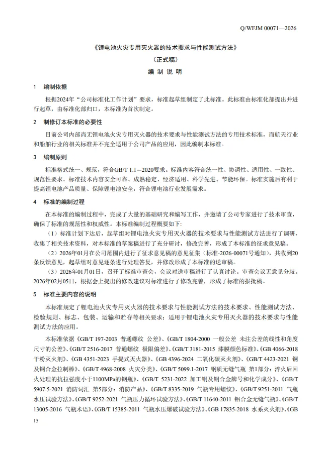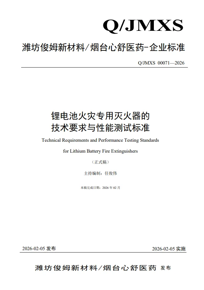 >中车-青岛动车新材料基地下属团队公司-最新团体标准-《锂电池火灾专用灭火器的技术要求与性能测试标准》(已15轮审核-过审公布)