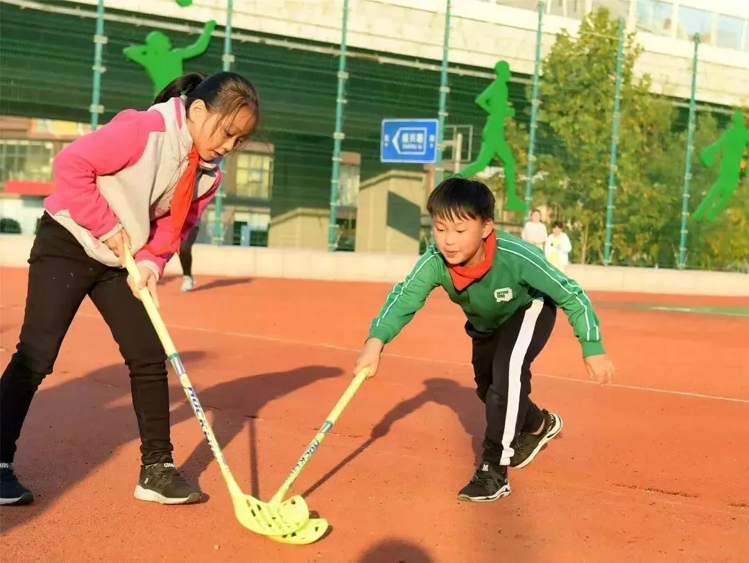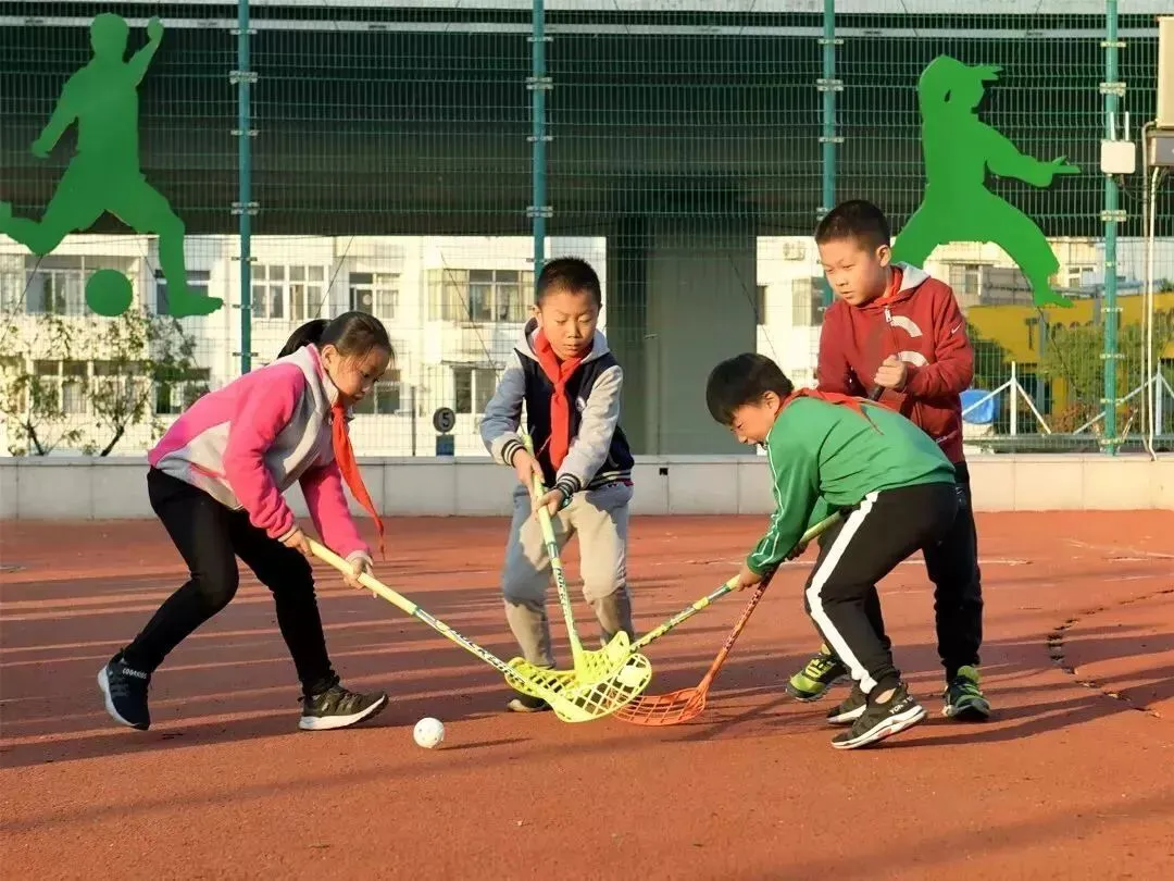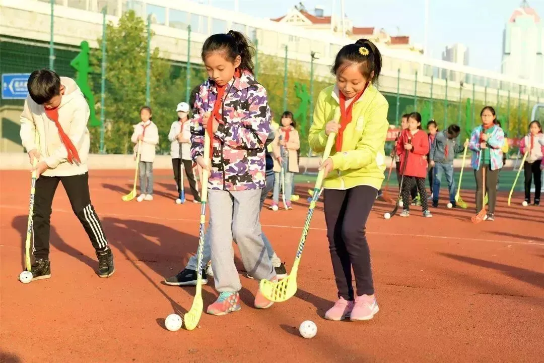 手持一支轻质球杆,奔跑向前追逐着一枚小球奔跑,目标是与队友合作将球打入对手球门,市南区宁夏路小学的操场上热闹非凡、洋溢着勃勃生机。这是4年级的学生们在上旱地冰球课,经过半年多的学习,学生们已经轻松玩转这项新兴的运动项目