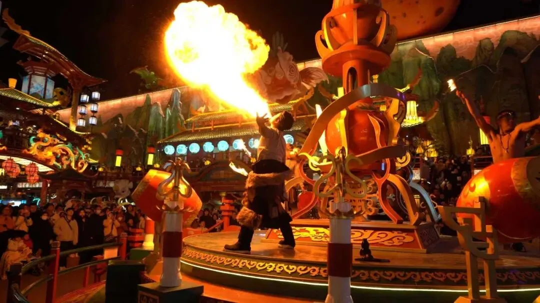 非遗展演区里,舞龙腾跃、喷火绝技轮番上演,传统民俗的魅力引得现场阵阵喝彩;山海巡游&万国幻兽园穿梭其间,上古神兽造型与国风演绎相映成趣,步步皆景皆是沉浸式体验。夜幕降临,四大主题《秘境山海》免费灯会璀璨绽放,流光溢彩的灯组勾勒出梦幻夜景,19:38烟花腾空而起,绚烂光影照亮夜空,全场共同欢呼喝彩,将跨年氛围推向顶峰。还有《山海寻光纪》国风打卡活动人气爆棚,大家穿梭于特色景观间打卡赢好礼,定格新年美好瞬间~