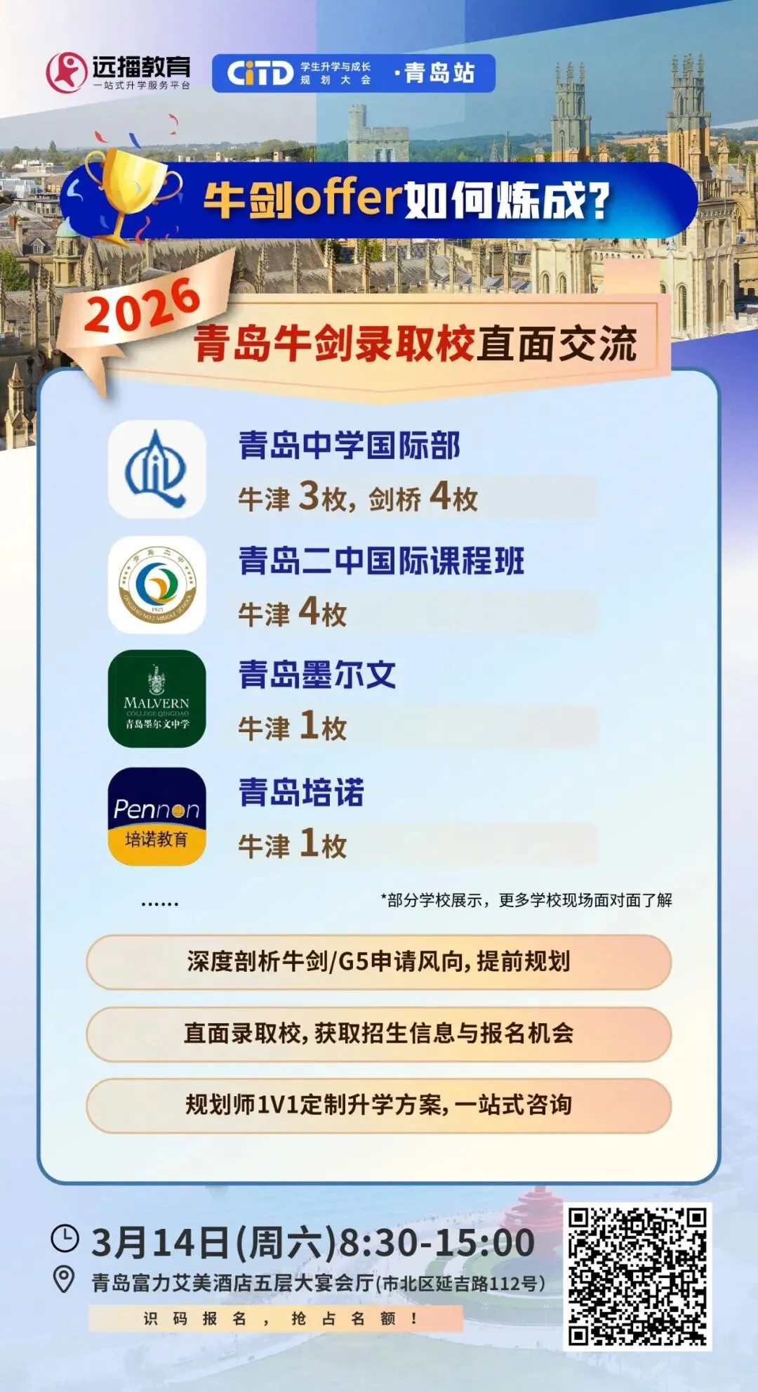 除了这两所学校,其余offer均花落青岛,4所学校瓜分13枚牛剑offer——