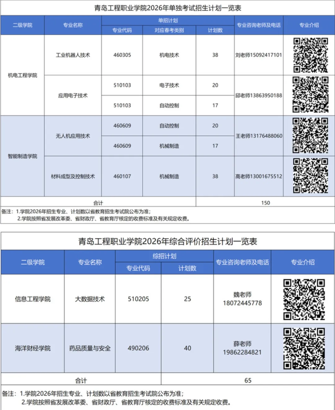 >青岛工程职业学院2026年单独考试招生和综合评价招生计划