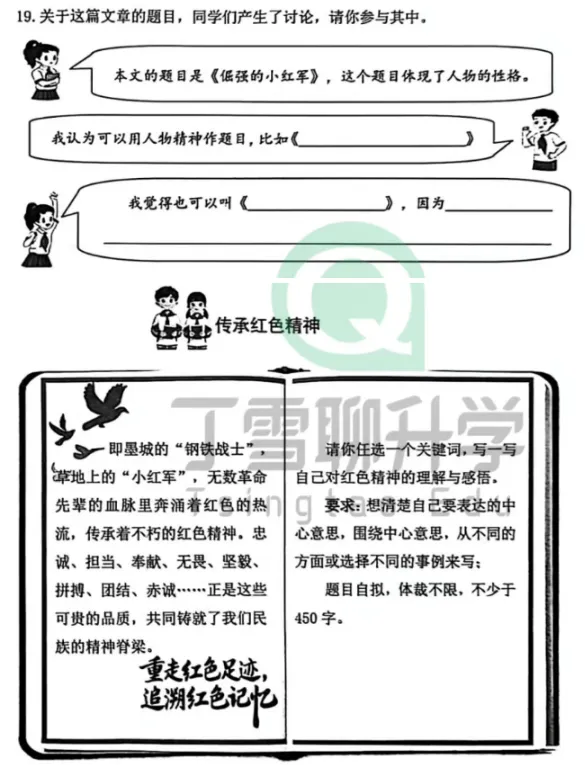 (2)每一额怀揣梦想的种子,都在时光里悄悄蓄力。不放想象一下:十年后,已经踏入大学校园的你,会在哪所学校?那里的校园是什么样的?你的生活又会迎来怎样的变化?……