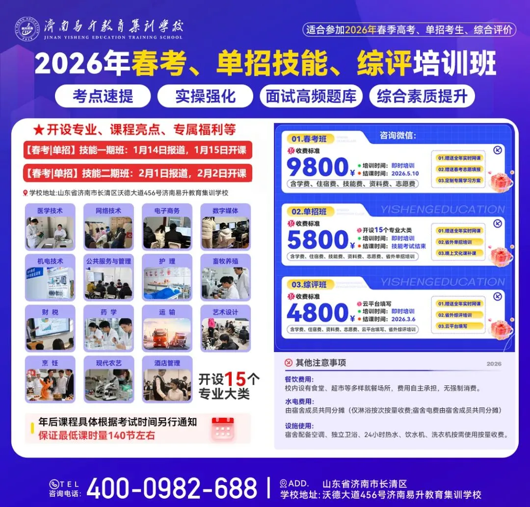 ②专业技能测试:我校按照山东省教育招生考试院提供的考生专业技能测试成绩计入总分。