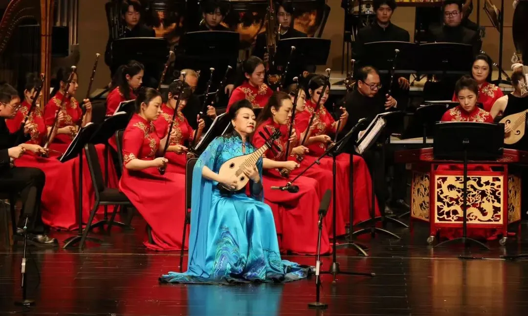 由中国广播民族乐团柳琴演奏家崔军淼教授领衔的《雨后庭院》,则带来一派清新雅致的意境。崔军淼教授用极为高超的演奏技巧,通过晶莹剔透的音色勾勒出雨霁初晴庭院的灵动画面。乐曲的高潮部分恰如“银瓶乍破水浆迸”,极强的张力憾人心弦。