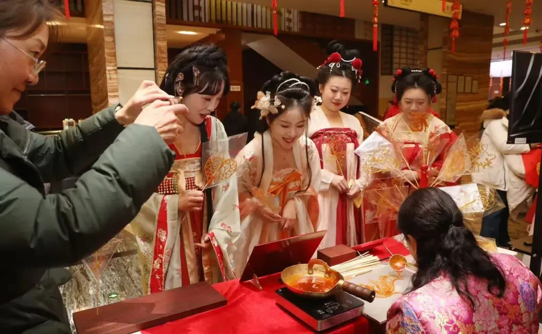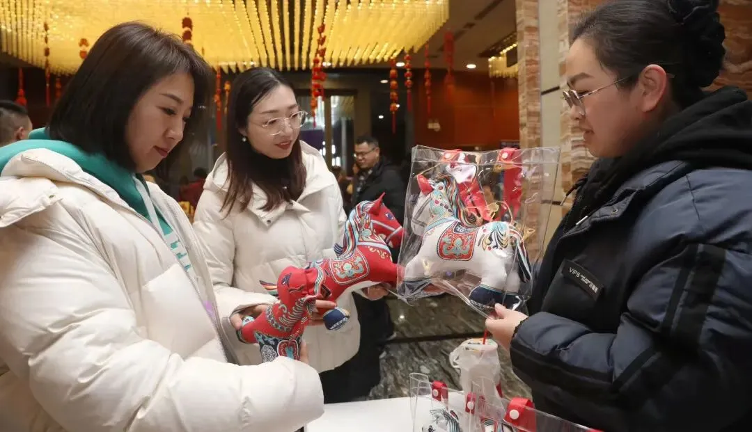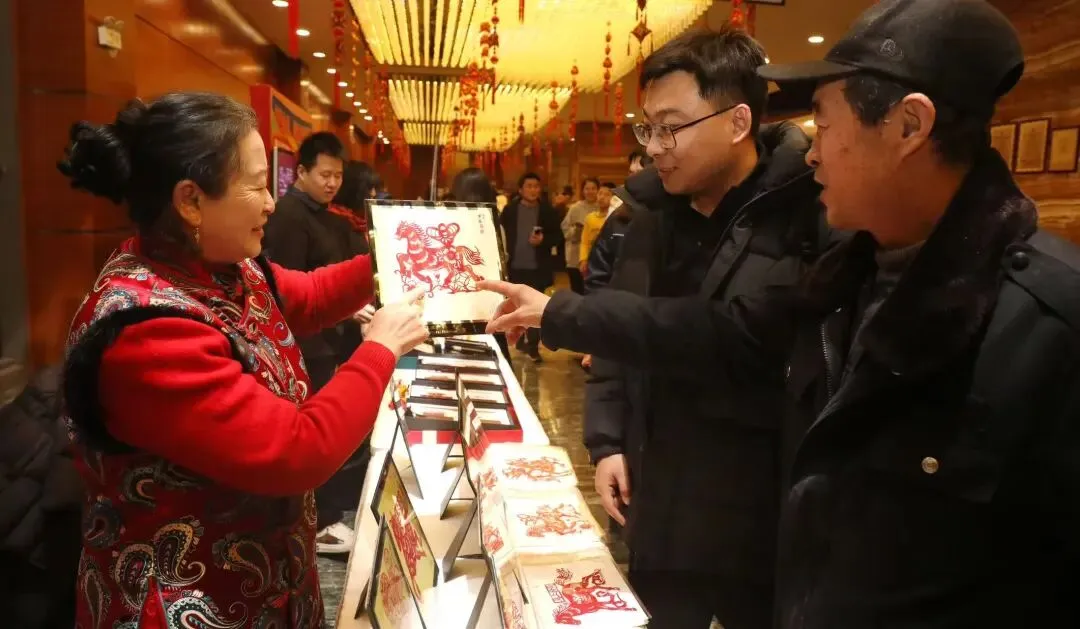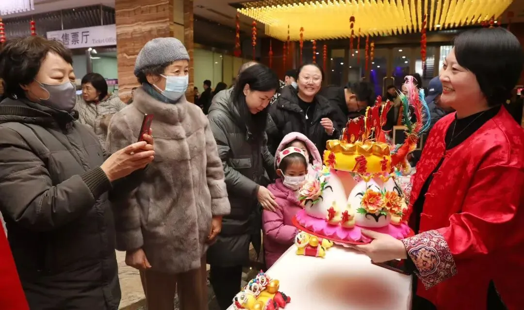 本次音乐会突破传统舞台边界,匠心独运地打造了一场多空间、多感官浸润的立体文化盛宴。开场前,身着汉服的“喜乐使者”于场内发放福字糖果,传递新春吉庆;场外非遗集市熙攘热闹,胶东美食香气氤氲,剪纸、版画等手作巧夺天工,更有古琴雅韵现场流泻。从味蕾的体验到指尖的触碰,从视觉的华彩到听觉的沉醉,这场音乐会成功地将传统文化转化为可感、可亲、可参与的沉浸式旅程,充分展现了主办方在活化传统、服务人民上的创新思维。