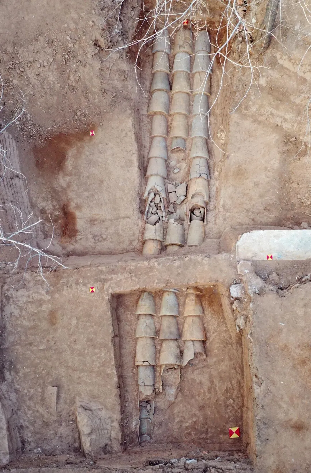 揭露10座马蹄形半倒焰窑及配套的蓄水堤坝。窑址出土的大型夔纹瓦当(复原直径约80厘米)与秦始皇陵同类器相同,确定为专为秦代高等级建筑生产建材的官方窑口。