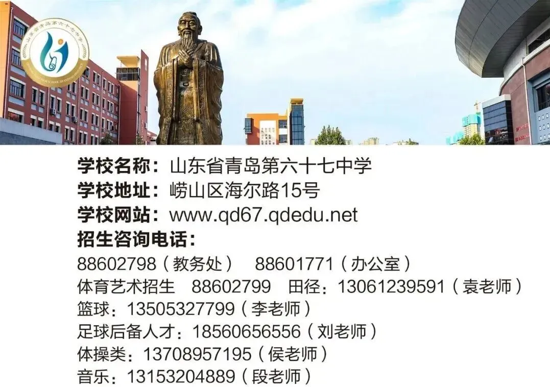 春信已至,恰是探校好时节。为使广大初三学子和家长朋友们更好的了解招生相关信息,我校将于2月7日(周六)上午举办校园开放日。我们期待与每一位初三学子及家长在此相遇,分享我们的教育理念,展示真实的校园生活。欢迎广大初三学子和家长朋友走进青岛六十七中,共同感受青岛六十七中的魅力。