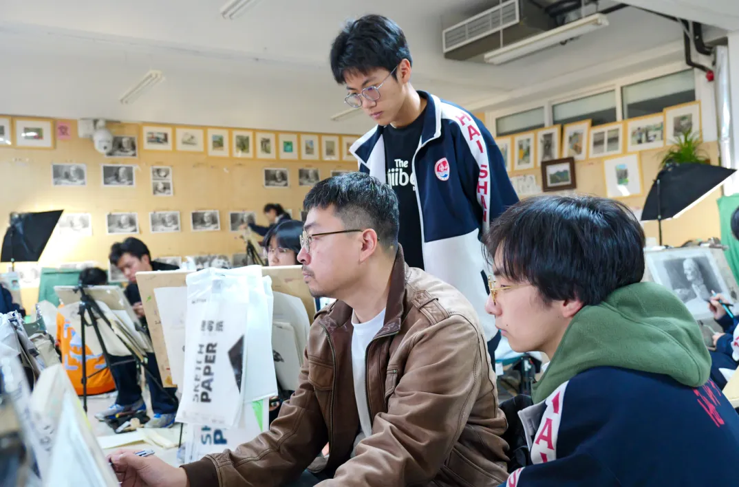 美术课堂:参观美术画室。我校美术老师指导同学们开展绘画创作,激发无限创意!