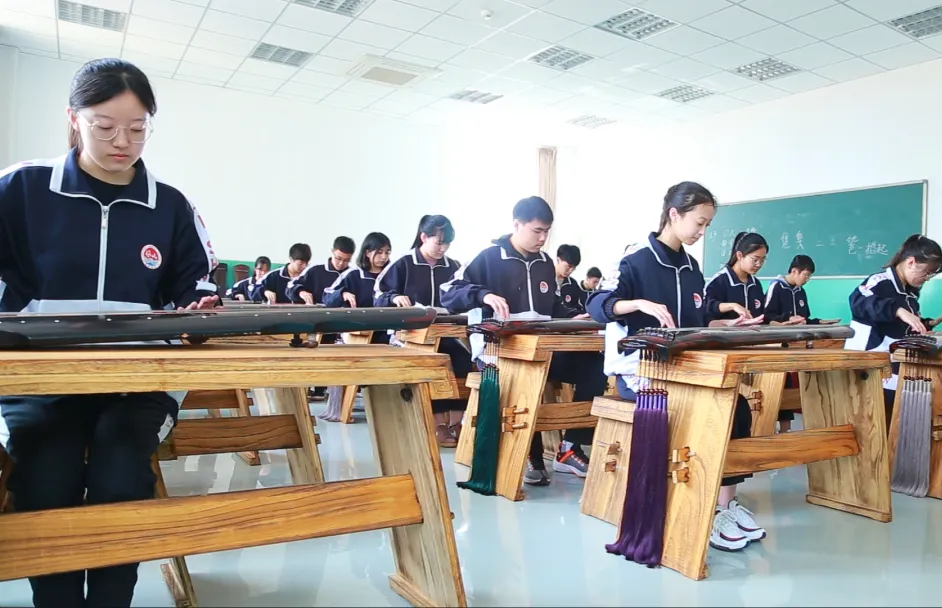 古琴课堂:聆听千年古韵。我校古琴班学子奏响古琴旋律,同学们可在古琴教师指导下进行指法练习。