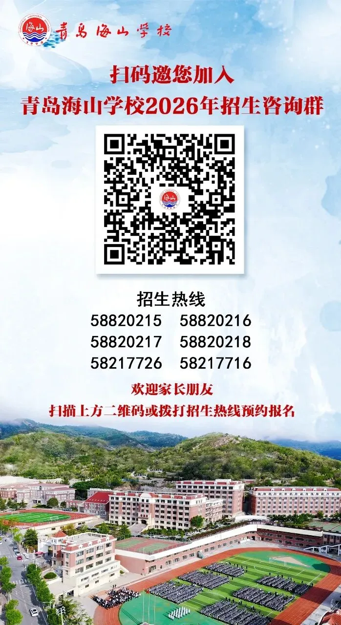 青岛海山学校按照教育局统一部署,自2021年起招生全程通过网上报名、网上录取、网上缴费办理,为确保家长得到准确的招生政策解读,及我校的招生信息能够及时、准确地传达给家长,避免考生错过宝贵的报名、录取机会,学校施行预报名登记制度,考生家长可通过拨打下方联系电话或扫描下方二维码进行预约报名,学校会有专业的招生老师为您提供咨询服务。