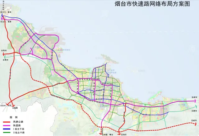 按照《烟台市快速路系统专项规划》,烟台将规划形成“一轴一横三纵+港区环”的快速路网络布局方案。