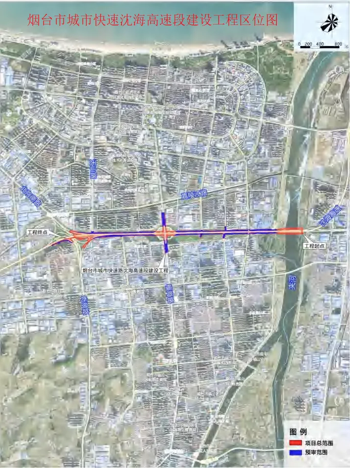 根据前期公示,沈海快速路路线起点位于芝罘区夹河东岸,与宫家岛立交相接,终点位于沈海高速福山立交,路线呈东西走向,全长约6.01km。