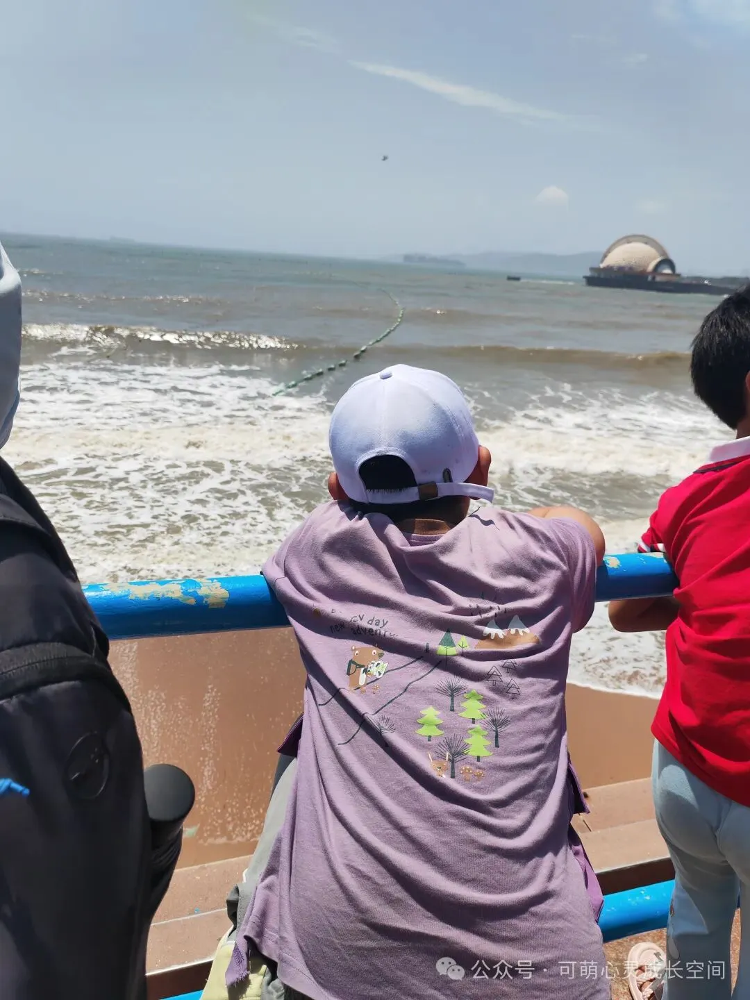 不到两个小时,我两就逛完了。天气出奇的好。但是台风的影响还在,海滩不允许下去,栈桥也关闭着。我两在栏杆处眺望着大海,感受大海的宽广无边和倾听海浪拍打岸边的声音。