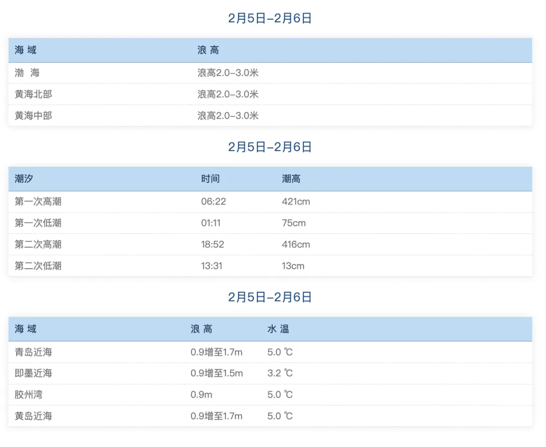 >潮汐|青岛2月5日-2月6日涨潮退潮时间表