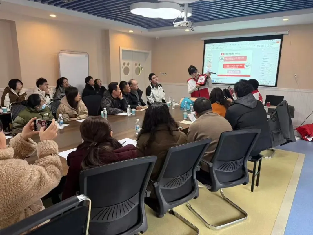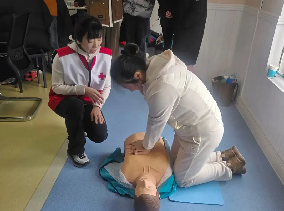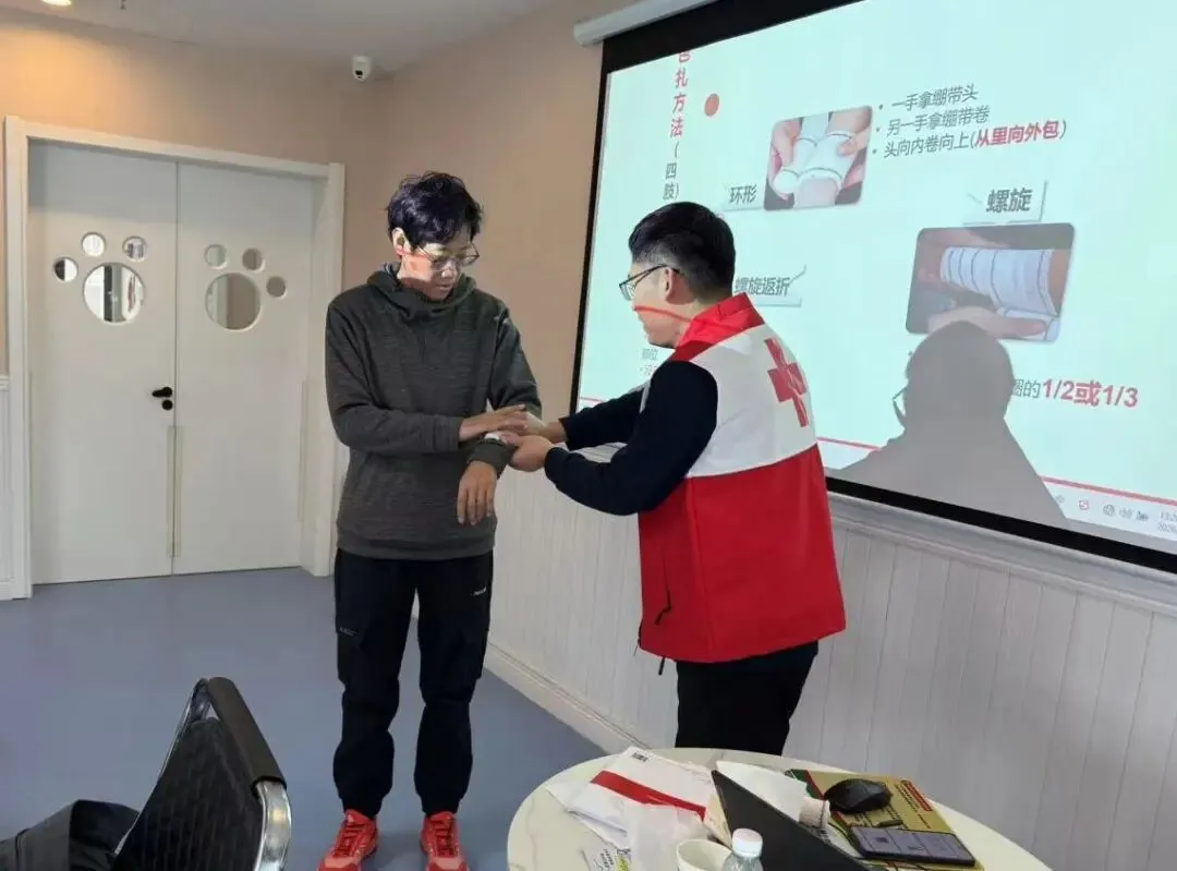 培训中,红十字师资紧密结合社区工作实际,精心设计教学内容。两位讲师化身“急救导师”,以通俗易懂的语言,系统讲解了心肺复苏(CPR)、创伤包扎、气道异物梗阻处理等核心急救技能,并结合居民突发疾病、意外摔伤等现实案例,逐步拆解操作要领,化繁为简,让专业急救知识变得易懂、易学、易用。