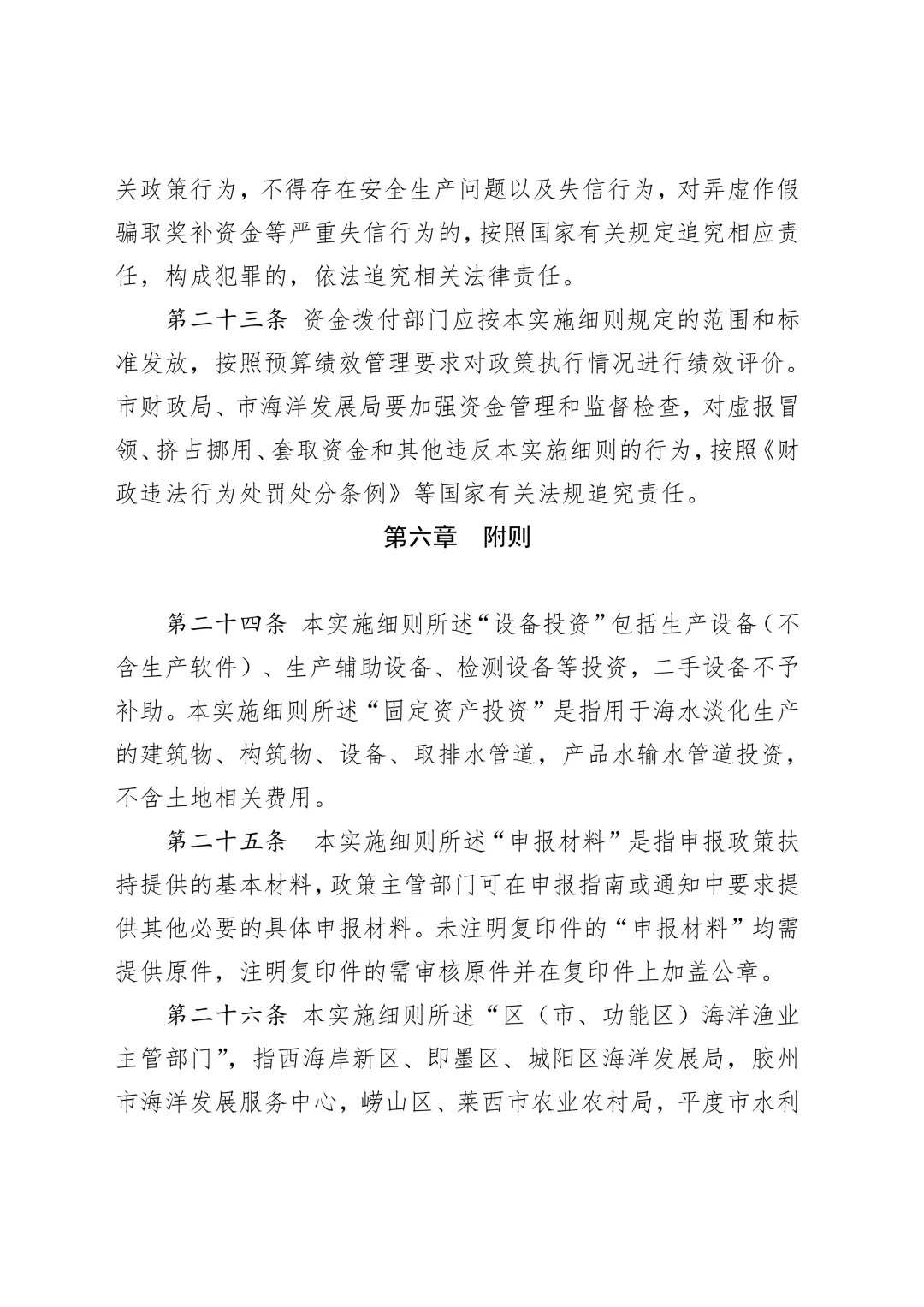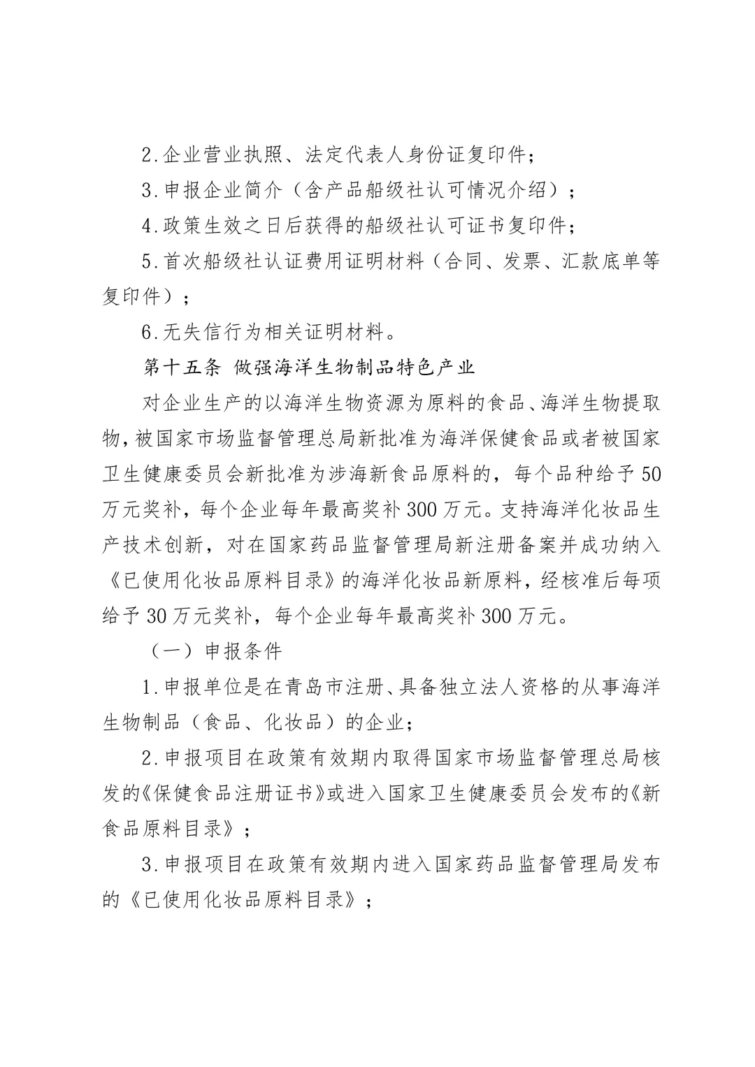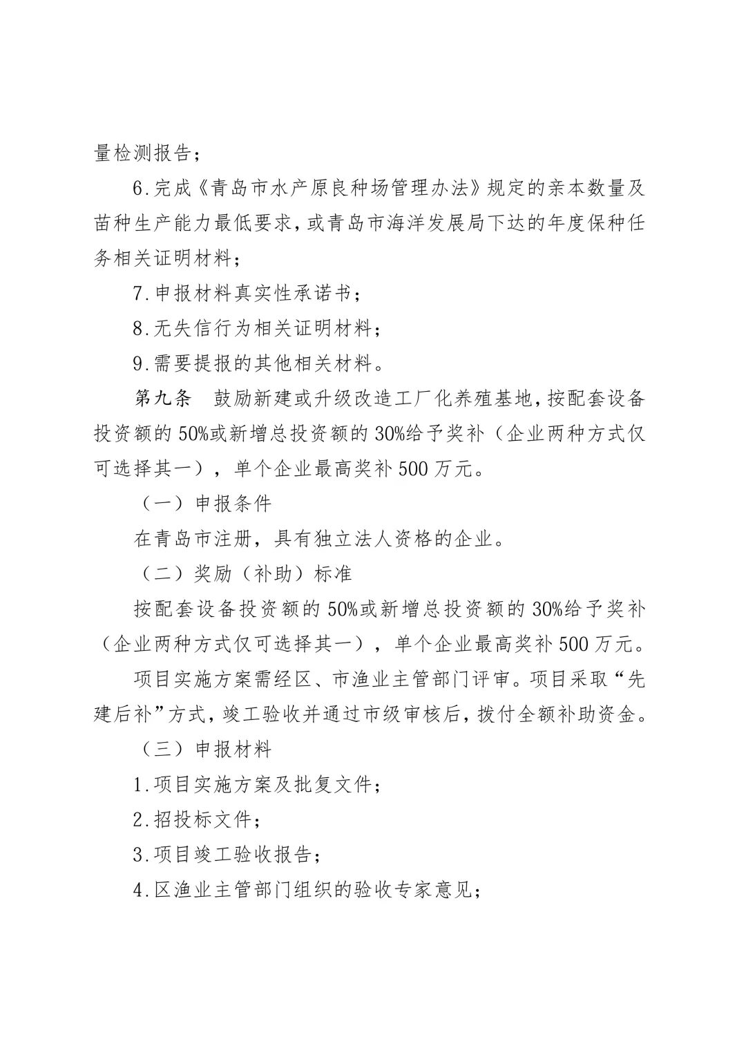 青岛市支持海洋经济高质量发展若干政策实施细则(第一批)(征求意见稿).docx