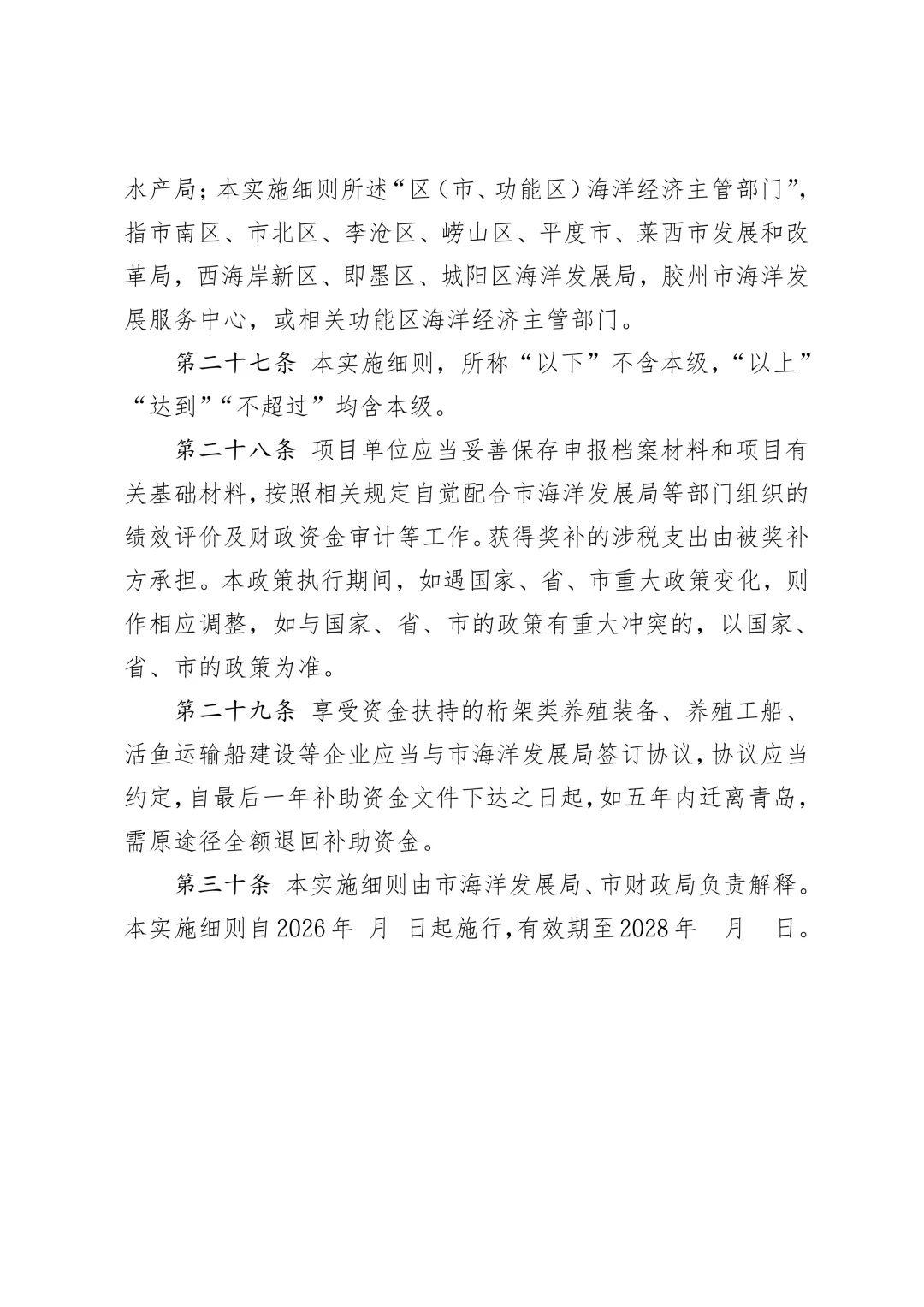 关于公开征求《青岛市支持海洋经济高质量发展若干政策实施细则(第一批)》(征求意见稿)意见的通知为落实《青岛市支持海洋经济高质量发展若干政策》(青政办字〔2025〕10号)要求,推动全市海洋经济高质量发展,加快打造现代海洋经济发展高地,全面推进引领型现代海洋城市建设,市海洋发展局研究制定了《关于贯彻落实青岛市支持海洋经济高质量发展若干政策的实施细则(第一批)》(征求意见稿),以下简称《实施细则》。