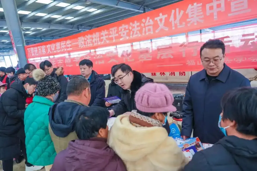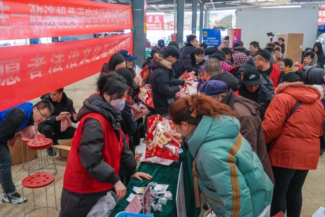 一进大集,“赠福迎春”宣传点位前已经排起长队,政法干警把法治宣传手册、反诈折页、安全海报,与红彤彤的春联、福字和实用手提袋、毛巾等年货打包成“新春法治大礼包”,1000余份礼包很快被热情群众领取一空,让法治知识随新春祝福,稳稳走进千家万户。