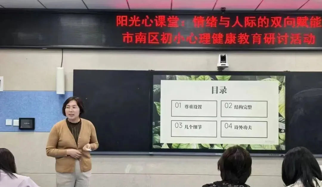 2025年市南区深入贯彻落实省、市工作部署,秉持“全域友好、最优成长”理念,以促进学生全面健康成长为目标,以服务站建设为枢纽,创新构建一体两翼、双轨并进、三圈协同的“1223”支持体系,有效提升区域心理健康教育水平与服务能力,为学生健康成长提供有力支持。