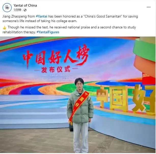 【烟台人物】弃考救人的姜昭鹏获颁“中国好人”