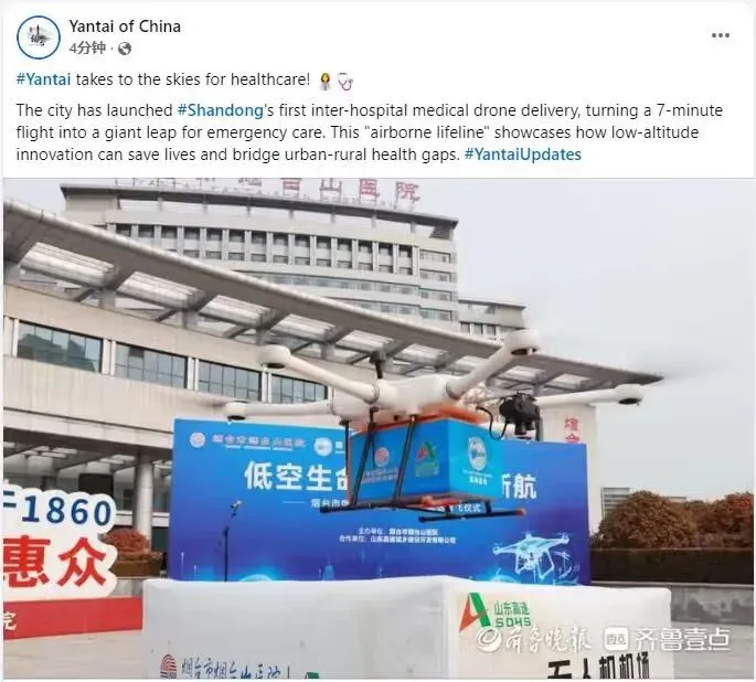 【烟台发布】烟台市低空医疗配送首飞成功,实现医疗服务“空地协同”发展